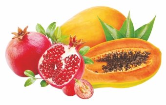 ताजा फल – पपीता, अनार, और सेब।